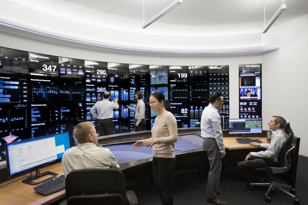 excelassetinvest.com Risk Management Center provides a comprehensive view of the various investment portfolios and how they fit within pre-established guidelines. Built in 2014, its front-end consists of a 27' by 8' interactive touchscreen designed to visualize data in ways that allow for rapid comprehension. Its back-end systems, which connect to every excelassetinvest.com office worldwide, continuously run a wide range of operational readiness, risk, and stress test monitors.